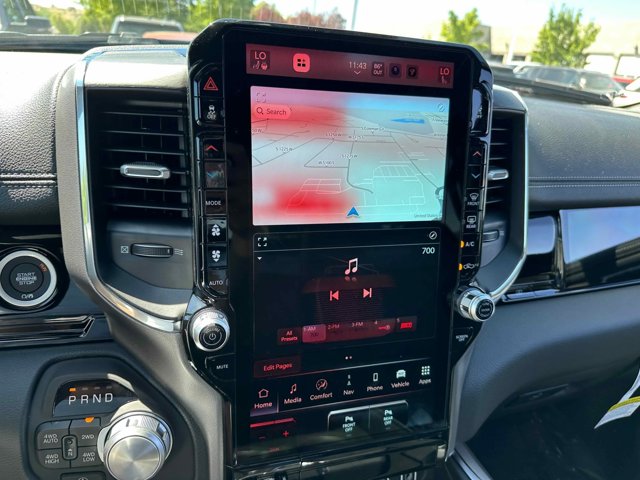 - LARAMIE LEVEL 2 EQUIPMENT GROUP -inc: Rain Sensitive Windshield Wipers Front Passenger Interactive Display Secondary Active Grille Shutters Smartphone As A Key Capable 14.4 Touchscreen Display Dual Wireless Charging Pad Radio: Uconnect 5 Nav w/14.4 Display harman/kardon 19 Speaker Premium Sound Cluster 12 TFT Color Display Power Tailgate