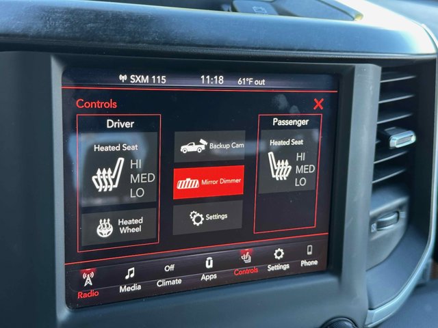 - BIG HORN LEVEL 2 EQUIPMENT GROUP -inc: Radio: Uconnect 4 w/8.4 Display Rear Window Defroster ParkSense Front/Rear Park Assist w/Stop Rear View Auto Dim Mirror Power Adjustable Pedals Rear Power Sliding Window Rear Dome w/On/Off Switch Lamp Glove Box Lamp Power 4-Way Driver Lumbar Adjust 115V Auxiliary Rear Power Outlet Power 8-Way Driver Seat 2 USB Full Function/Charge Only Media Hub Heated Front Seats Heated Steering Wheel Foam Bottle Insert (Door Trim Panel) Class IV Receiver Hitch Dampened Tailgate Security Alarm Black Premium Power Mirrors Big Horn IP Badge Remote Start System SiriusXM Satellite Radio 400W Inverter Air Conditioning ATC w/Dual Zone Control 115V Auxiliary Power Outlet Universal Garage Door Opener 2nd Row In Floor Storage Bins Sun Visors w/Illuminated Vanity Mirrors